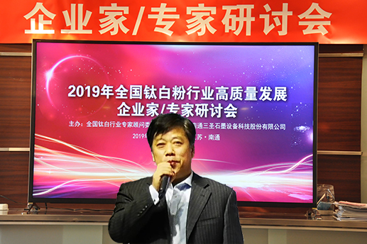 2019年3月29日至31日,2019年鈦白粉行業(yè)高質(zhì)量發(fā)展企業(yè)家/專家研討會(huì)在南通三圣石墨設(shè)備科技股份有限公司召開,全國(guó)鈦白粉行業(yè)來自四川、重慶、廣東、安徽、江蘇、浙江、甘肅等省、市的主要鈦白粉企業(yè)的董事長(zhǎng)、總經(jīng)理或技術(shù)負(fù)責(zé)人、全國(guó)鈦白粉行業(yè)專家顧問委員會(huì)的專家、國(guó)家化工行業(yè)生產(chǎn)力促進(jìn)中心鈦白分中心主任、鈦白粉產(chǎn)業(yè)技術(shù)創(chuàng)新戰(zhàn)略聯(lián)盟理事長(zhǎng)等近三十位企業(yè)家、專家、領(lǐng)導(dǎo)齊聚南通,聚焦鈦白粉行業(yè),共謀高質(zhì)量發(fā)展。