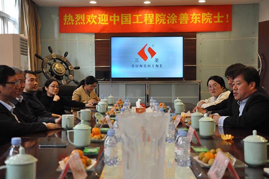 12月11日,中國工程院涂善東院士率華東理工大學張顯程教授、周邵萍教授、周幗彥教授、賈九紅副教授、徒云副教授一行六人,蒞臨南通三圣企業(yè)集團視察指導,南通三圣企業(yè)集團馮圣君董事長率領研發(fā)團隊核心成員熱情接待了涂院士一行,涂院士就前沿技術向企業(yè)作了詳盡介紹。