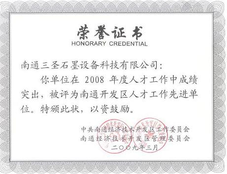 我公司被南通經(jīng)濟技術(shù)開發(fā)區(qū)評為2008年度人才工作先進單位